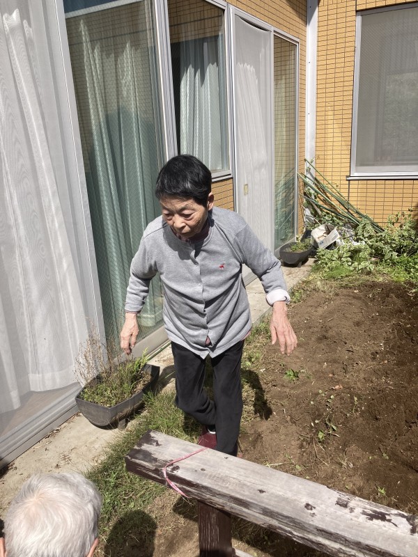 お元気な利用者様のお力も借りて 毎年小さな畑で