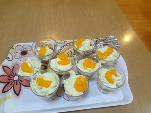 上田ホーム長が手作りの抹茶パフェを提供してくれました(^o^)丿