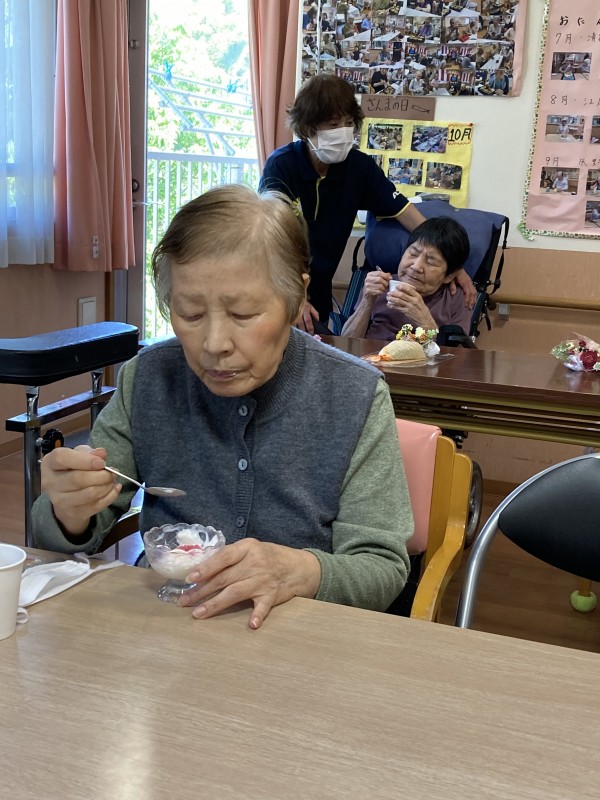 出前の昼食を終え、フラワーアレンジメント作りを楽しまれた後デザートをいただきましたのでその様子を伝えていきたいと思います。