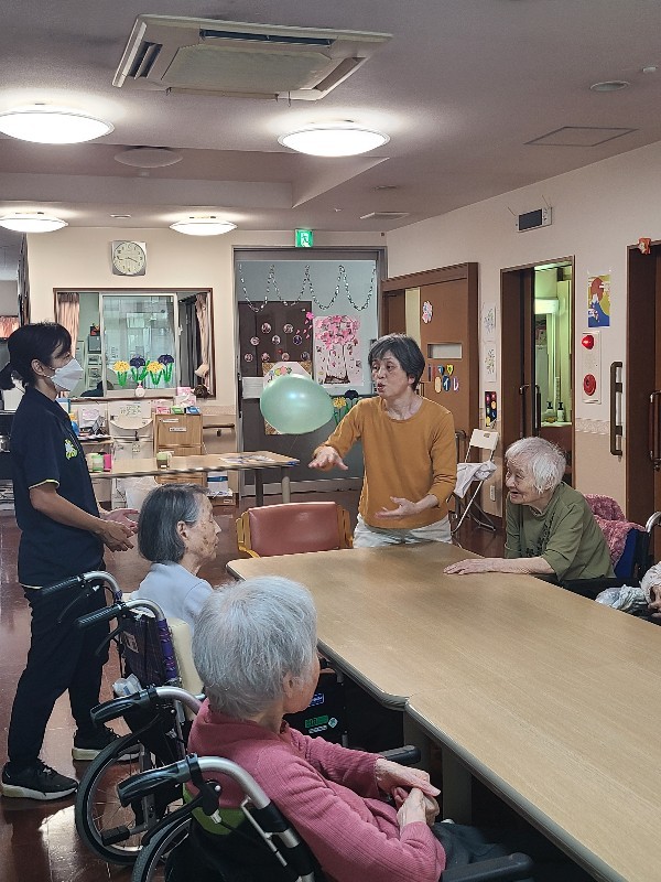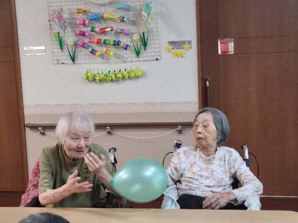 風船バレーをして身体も動かします(*^^)v