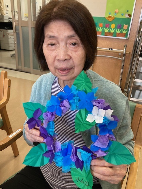 利用者様とご一緒に紫陽花の飾り作りを行いました(^^♪