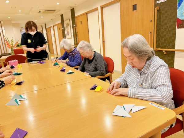 本日は、折り紙レクリエーションでの様子をお伝えします。