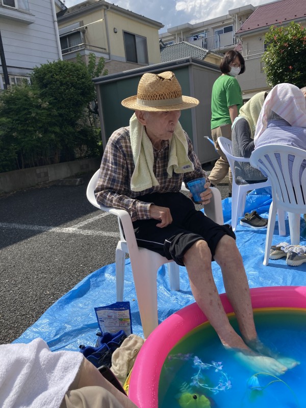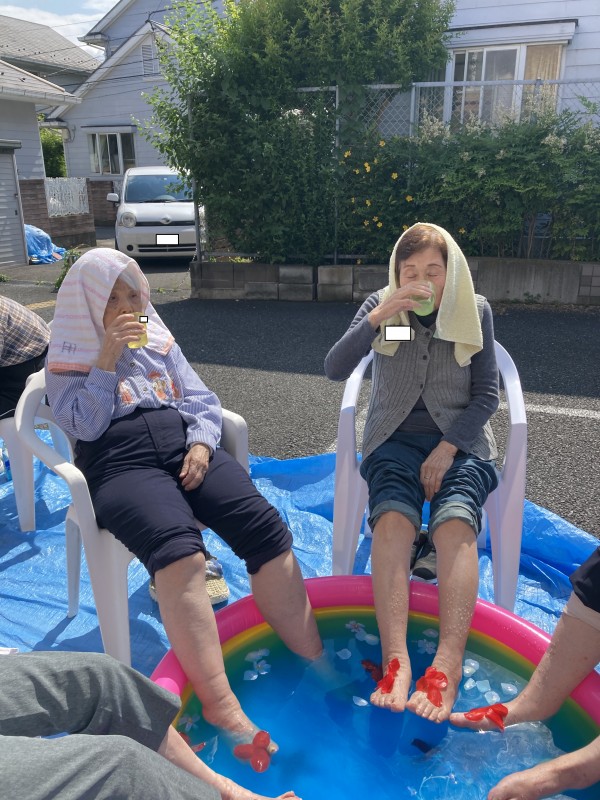 2階の方達には玄関先で外気浴を楽しみながら足湯をして頂きました♪