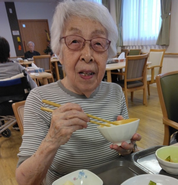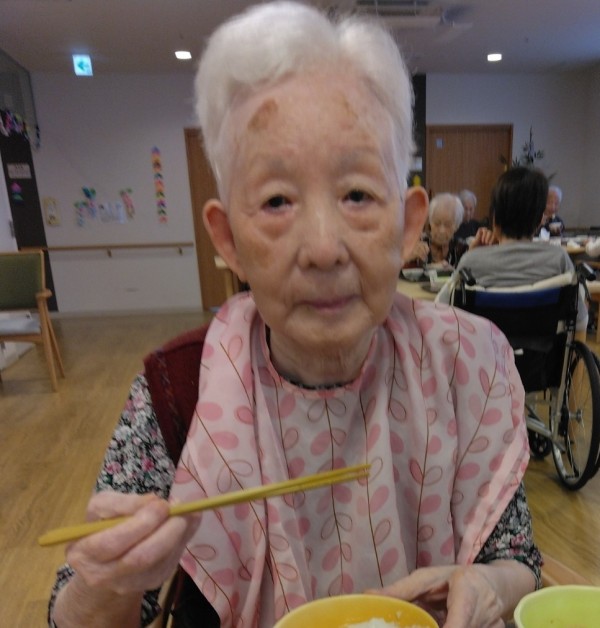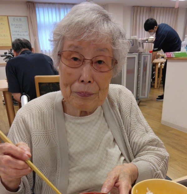美味しくいただいていますよ、と、にっこり。元気の秘訣はしっかり食べる事ですね。