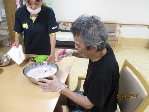 さて本日の、おやつはご利用者様とのレクリエーションも