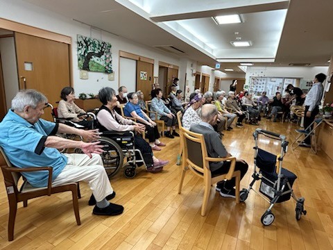 先日は健康増進課の岡田インストラクターが来て、入居者様に元気を注入してくれました!!