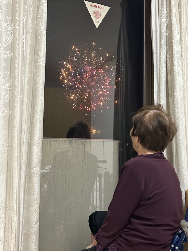 うちの施設は打ち上げ場所のすぐ近くなので数日前から「天気はどうかな?見れるかな?」と楽しみにされていたご利用者様達。