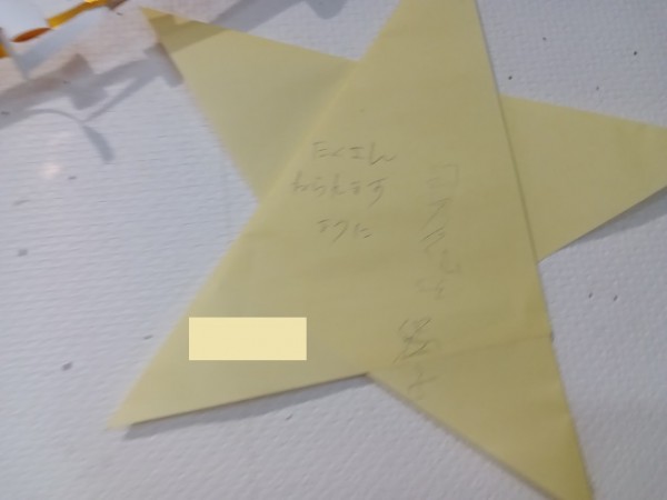 今回は短冊ではなく、大きなお星さまに願い事を書きました。