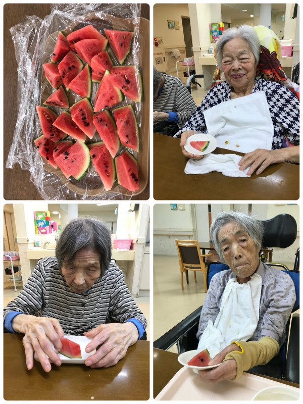 さて、先日スイカが沢山取れたので、夕食と一緒にみなさまにお届けしましたー!!
