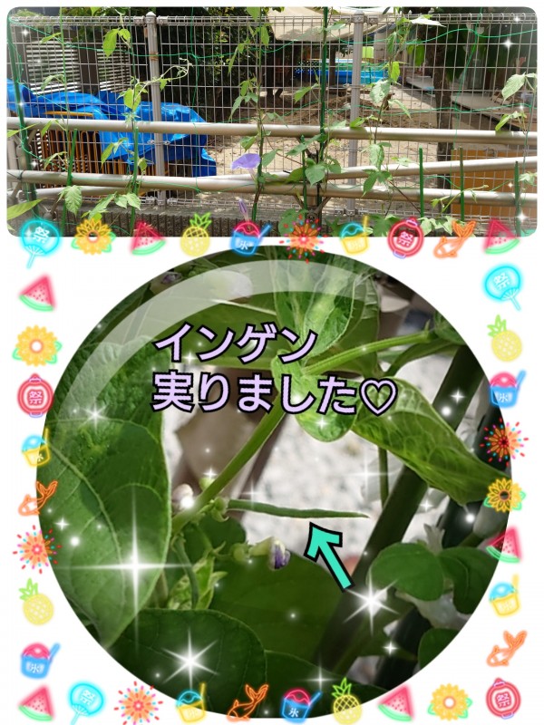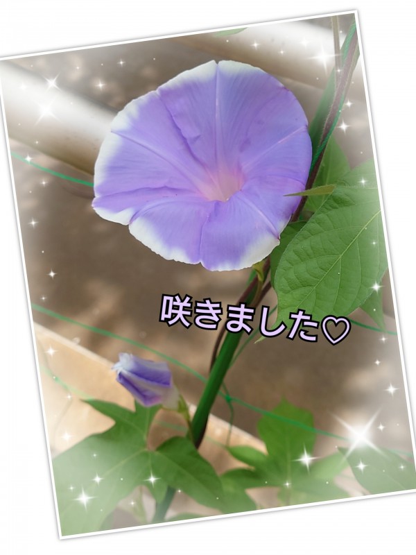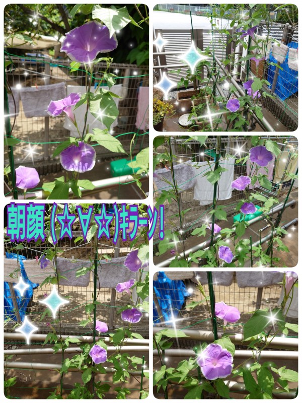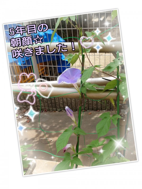 朝顔に水やりを行い。笑顔が溢れます( *´艸`)