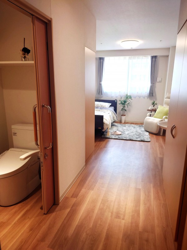 こちらは入居者様が安全に使えるようにしっかりと手すりも付いていて安心ですね!