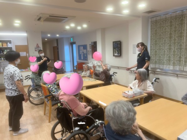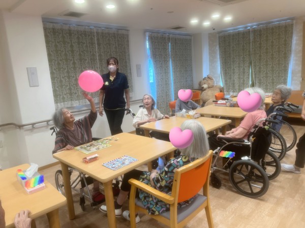 レクリエーションの時間に風船バレーを行い、
