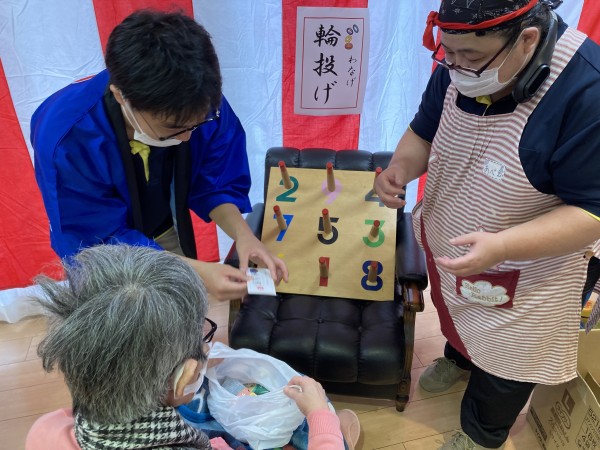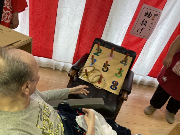 午前中は紐ひもくじ・輪投げ・射的・ヨーヨーすくいレクリエーション!(^^)!