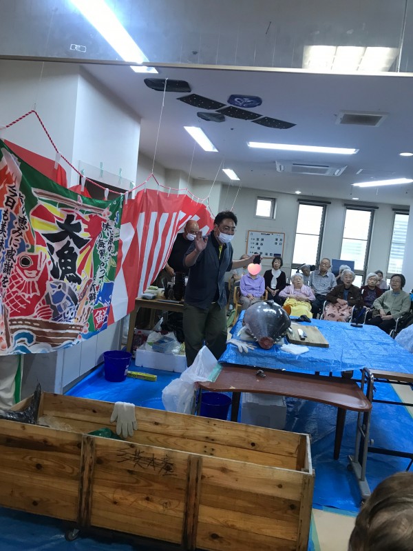さて、先日は敬老会レク、マグロの解体ショーがありました!