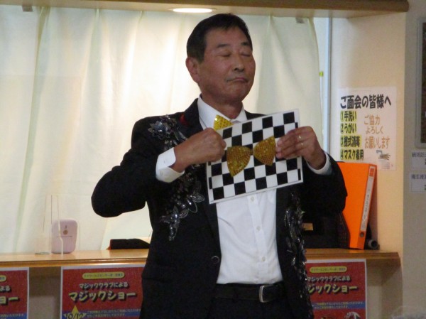 ステッキが紐に成ったり、大きなハンカチに成ったり、ハトが出てきたりとスピード感溢れるマジックでした!