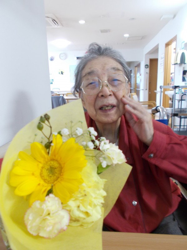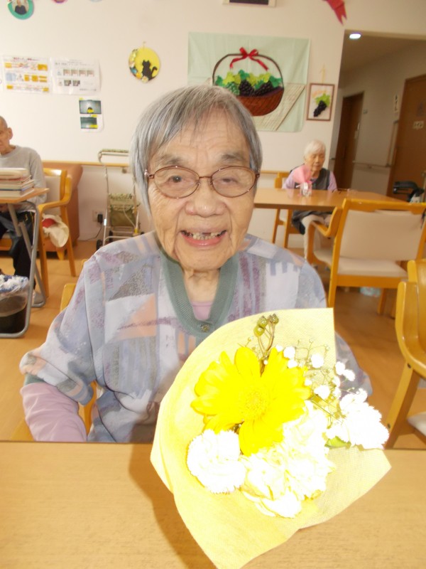 敬老の日にお花を飾らせて頂いたのですが、皆様お花に負けない表情を見せて下さいましたので、遅くなっても
