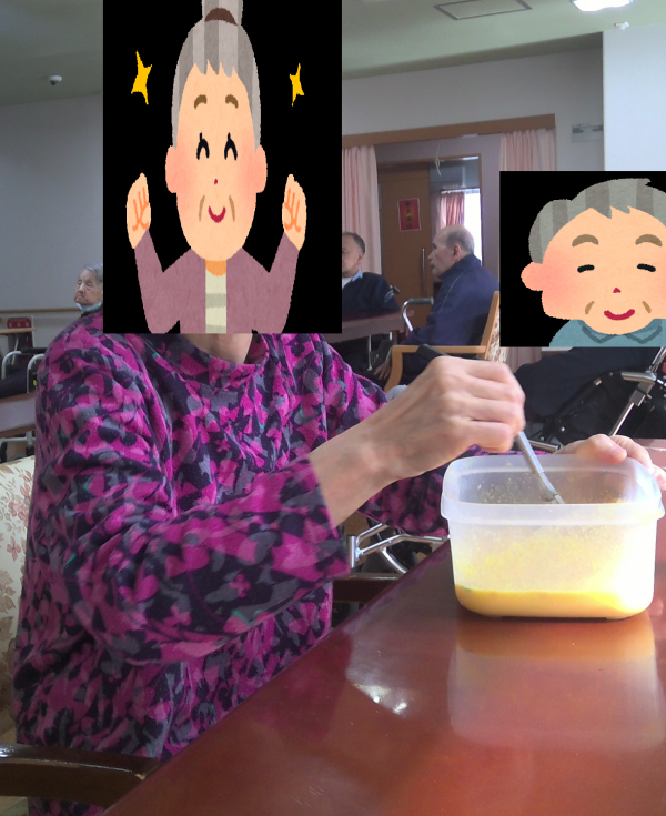 混ぜた後は、冷蔵庫で冷やし固めて、おやつに提供し召し上がりました。
