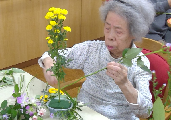 本日30日(水)、1階デイサービスにて「フラワーアレンジメント」があり、すこや家からも参加させていただきました。
