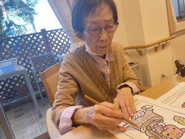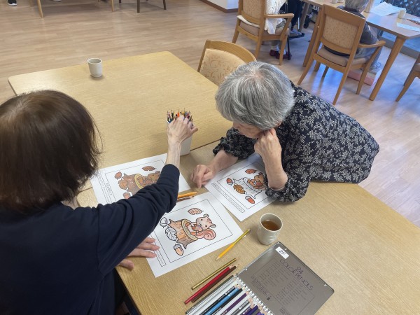 晴れ間も見えて来た午後、みなさんで塗り絵をやりました(^。^)