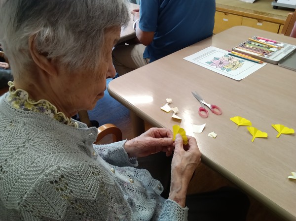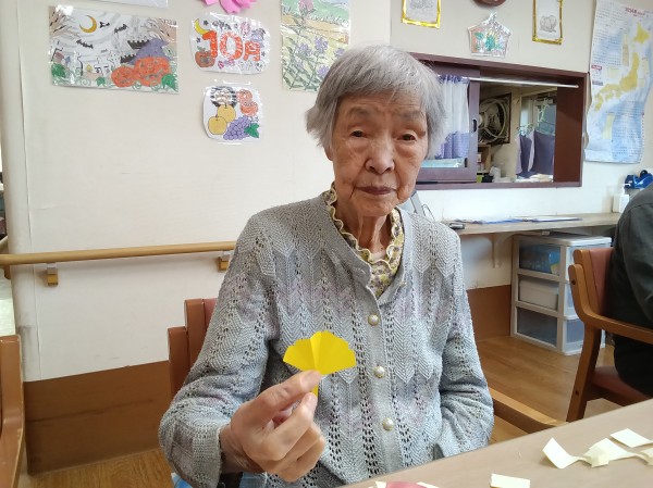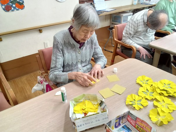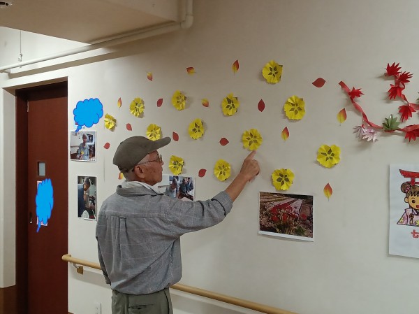 ご利用者様にお手伝いいただき、紅葉の制作をしました。