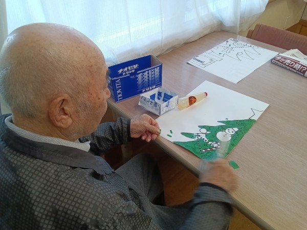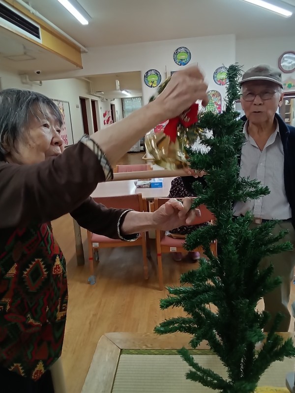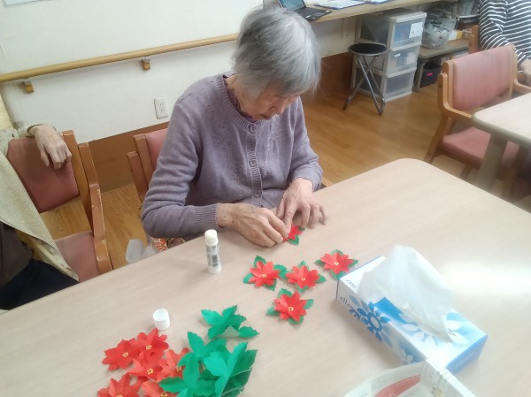 ということで、ご利用者様にお手伝いいただき、クリスマス装飾を作成しました。