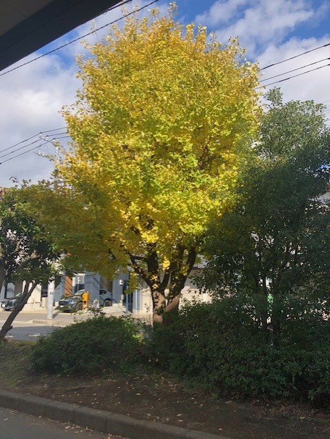 横浜市でもきれいな紅葉になっていて外の景色がより一層彩られています。綱島の目の前の歩道の街路樹にはそれはそれは立派なイチョウの木があるんです。