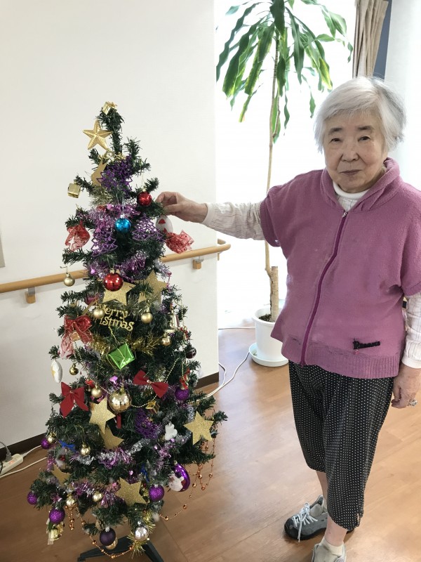 ご利用者様、職員が飾り付けたクリスマスの飾りつけが玄関に設置しております。