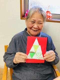 三角形がたったの9枚で、かわいいツリーができました☆☆