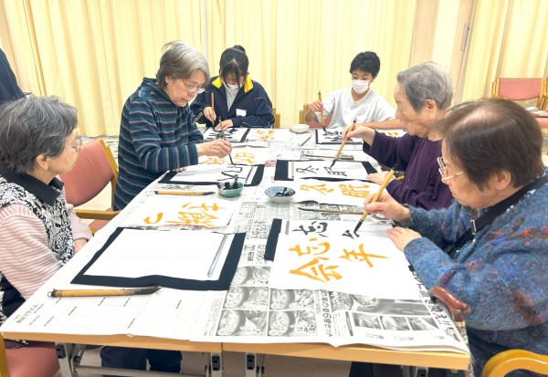 中学生はお手の物ですね☆いつも以上に楽しい書道クラブになりました♪