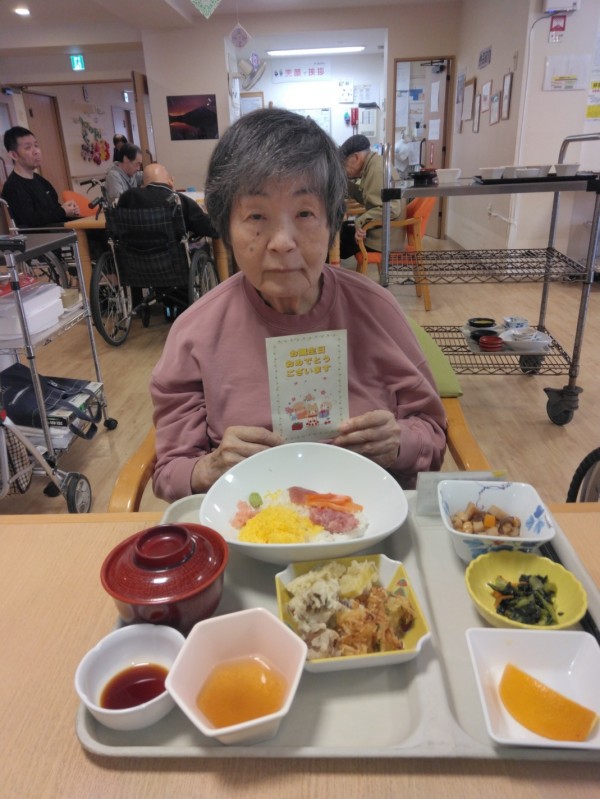 昼食にはイベント食「海鮮ちらし・天ぷら・煮物・フルーツ等」提供し