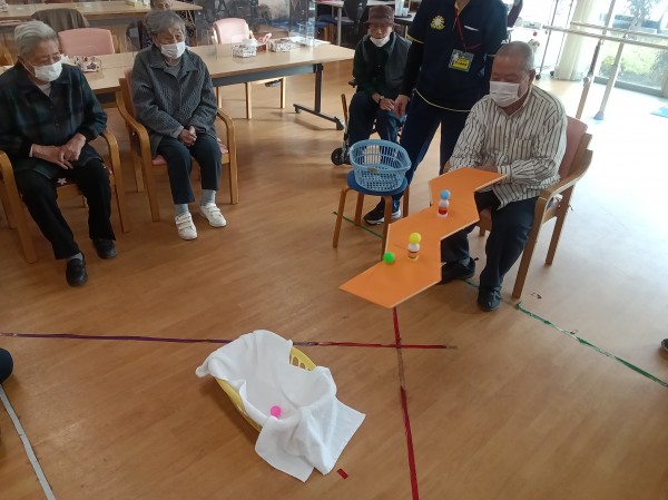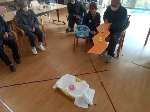 沢山のピンポン玉がカゴに入れば、点数が高くなります。