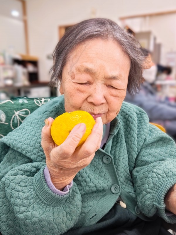 最後に柚子を持ってるお写真撮らせて~と持っていくと「いい香り~」と鼻をよせて楽しまれていました!