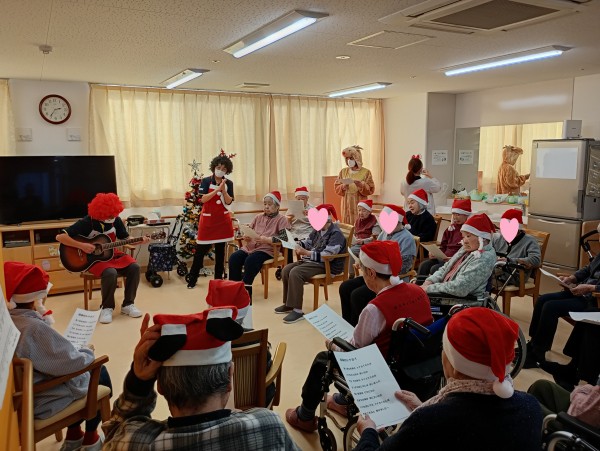 新人シンガーソングライターのチクリーナ(当施設職員)が登場して、みんなと一緒にクリスマスソングを熱唱しました。