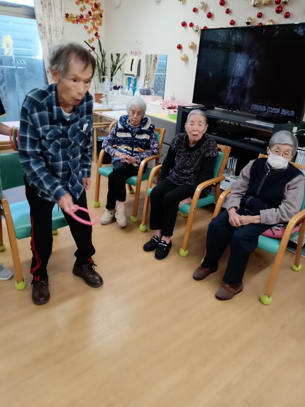 今日はみんなで輪投げレク!