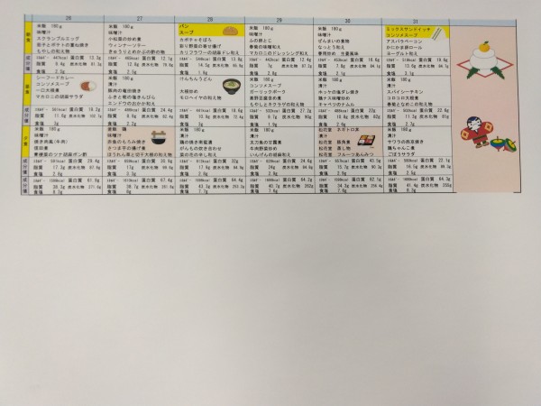 1月のメニュー表をお送りいたします。