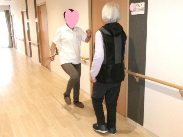 居室でマッサージを受けたのちの歩行の練習中でした。
