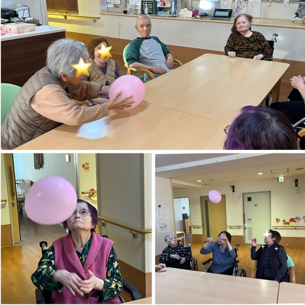 車椅子から前のめりでパスする方や、椅子から立ち上がって風船を返す方やらで