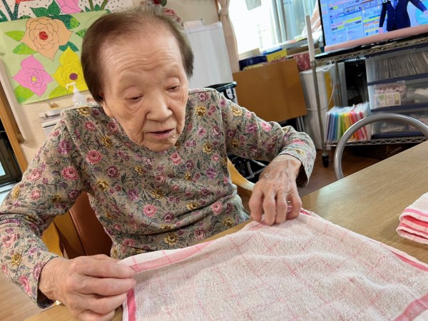 食後お声掛けにて布きんたたみのお願いをすると快く引き受けてくださいました。