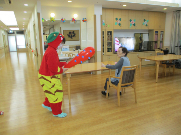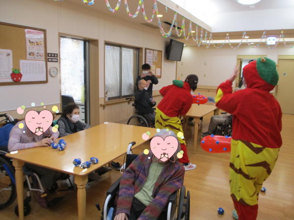 鬼の登場に目を真ん丸にして驚く利用者様もいれば、玉を持って今か今かと待っている利用者様も(笑)