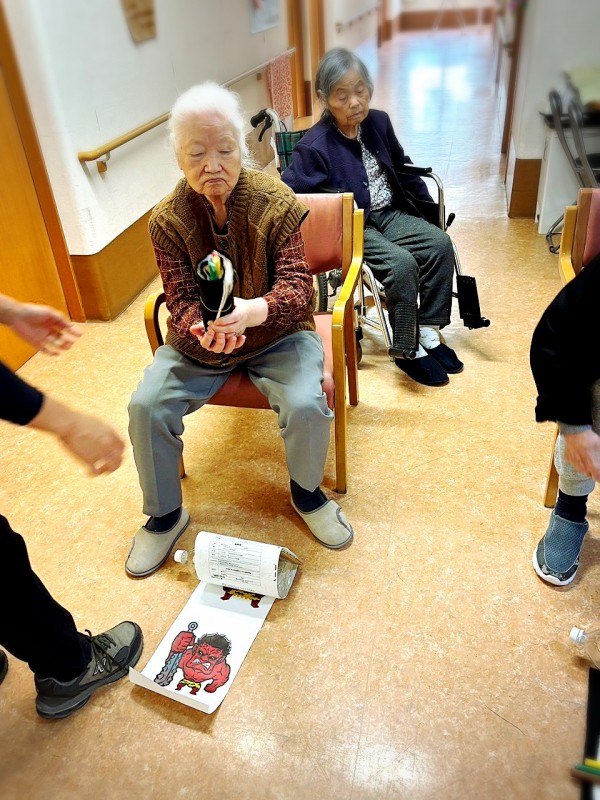 グループホームみんなの家大宮三橋 3階節分レク恵方巻まきまき&手繰り寄せゲームをしました!