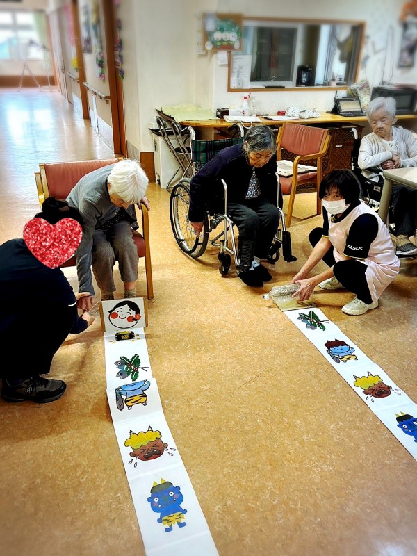 本日は節分レク恵方巻まきまき&手繰り寄せゲーム3階フロアの様子をご紹介いたします♡