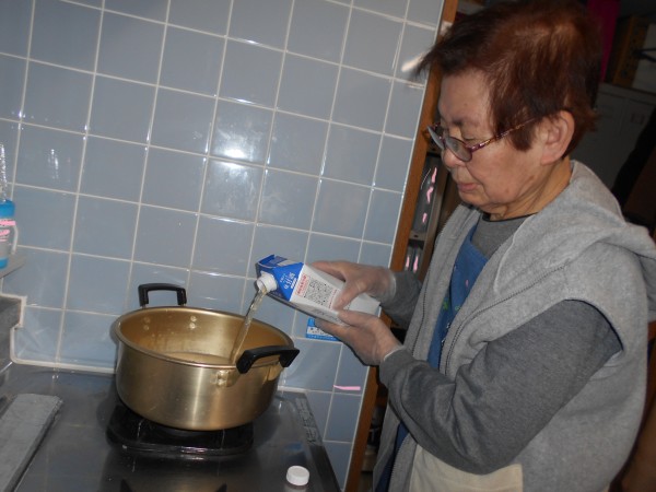 甘酒をお鍋に入れて、温めているところです(^^)/