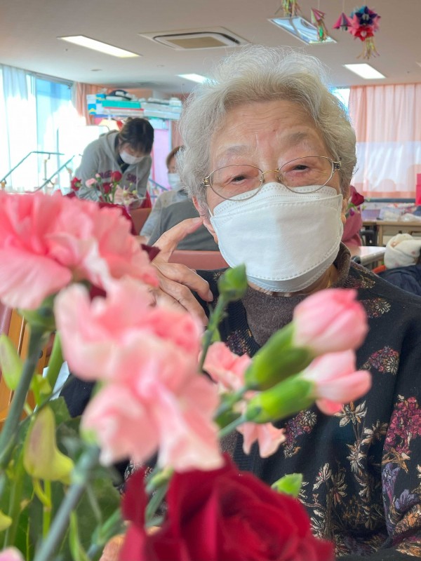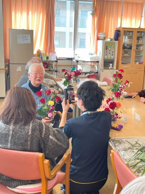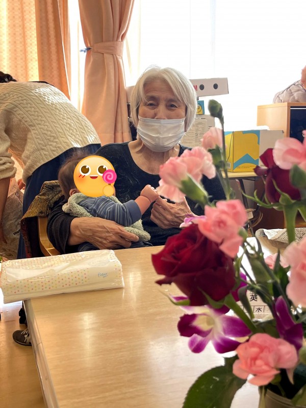 その日、お花の先生が6ヶ月の赤ちゃんも連れて参加され、ある利用者さんが「赤ちゃんと花々のコラボレーション、これ以上の癒しはないわ」と笑顔で語っていました。世代を超え、温かい交流が生まれました。
