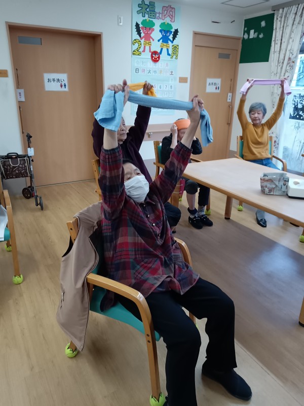 こんにちは、皆さん! 今日のレクはタオル体操で、シンプルながらも心がほっこりする時間を過ごしました。