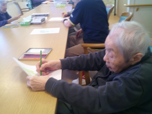 2階入居者様方で塗り絵等のレクリエーション活動を行いました