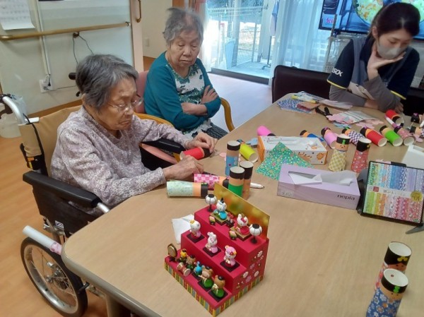 皆さまと一緒に作ったお雛様は、フロアに飾り並び