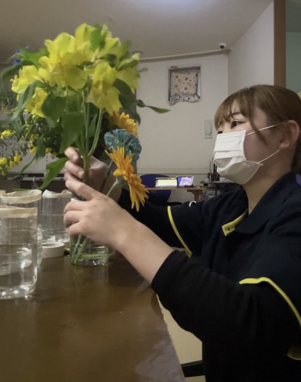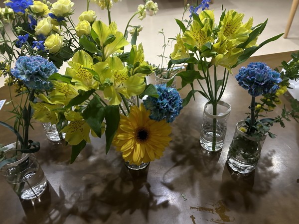 夜勤中に準備!青と黄色のお花、とっても綺麗です♪