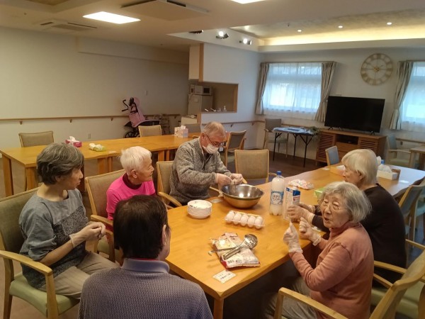 とある日の日曜日、集まれる方で【おやつ作りレク】を行いました♪