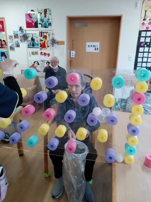 今日は楽しいレクリエーションのひとつとして「ボール落としゲーム」を開催しました!