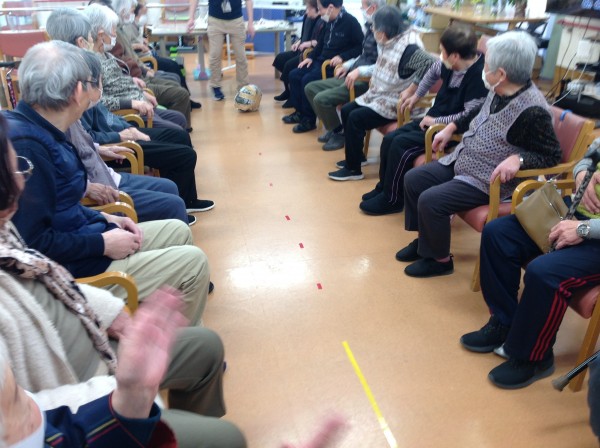 最後はサッカーゲーム!皆様が使った新聞紙を全部丸めてサッカーにし、互いのゴールに向けてシュートしあいました!